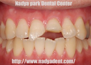 「交通事故で前歯が欠けてしまった」という事で来院されました。