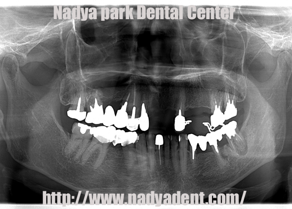 上の前歯部、左下の奥はGBRという骨を作る手術を行い