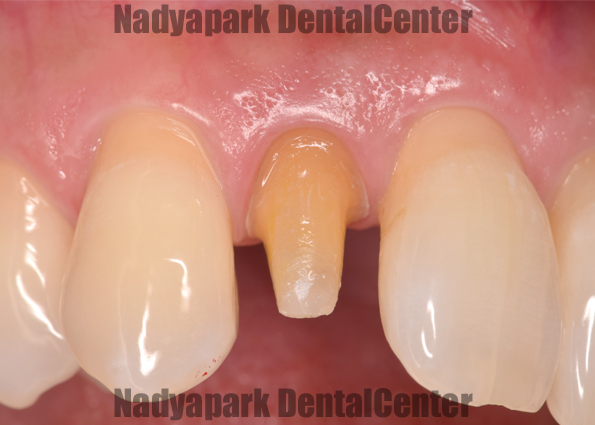 まずは治療のため、もともとの被せものを外して仮歯にします。ナディアでは他院で行った根の治療は全てやり直しをしているため、仮歯を入れてまずは根管治療から行いました。
