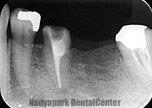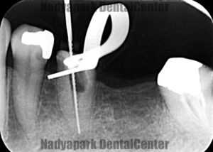 1度の治療で違和感が消失したため、2回目の治療で根管充填を行いました。