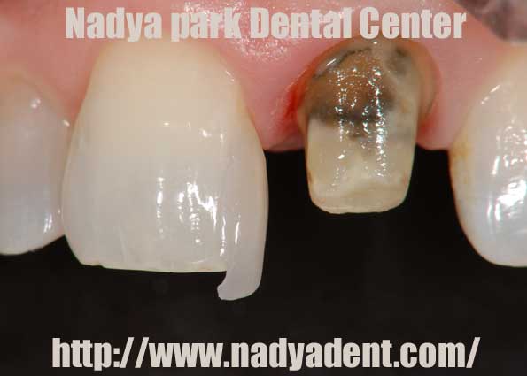 この状態で、根の治療のやり換えと、ホワイトニングを行いました。